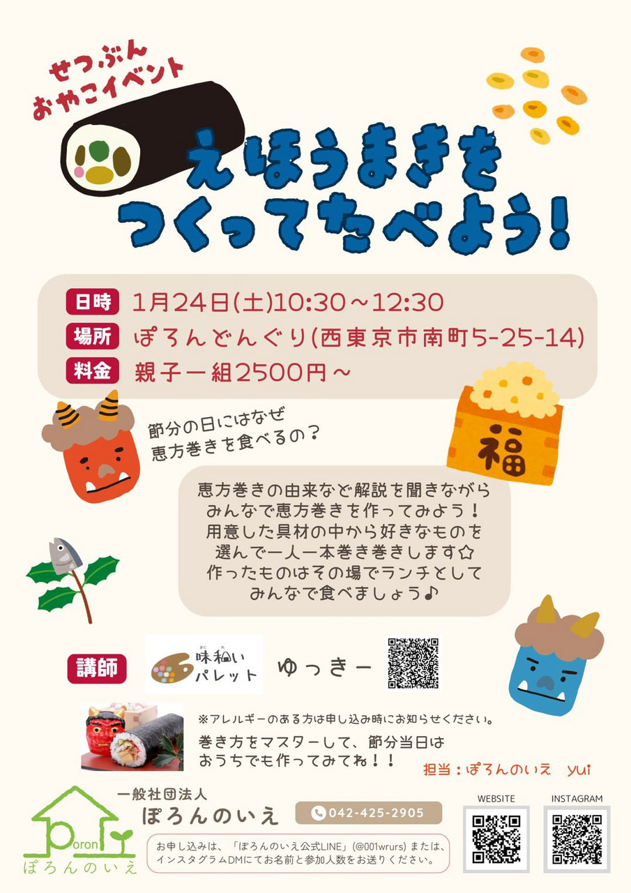 ぽろんのいえ公式LINE、または上記の講師インスタDMより、参加者全員のお名前(お子さまの性別、生年月日も)をお知らせください。